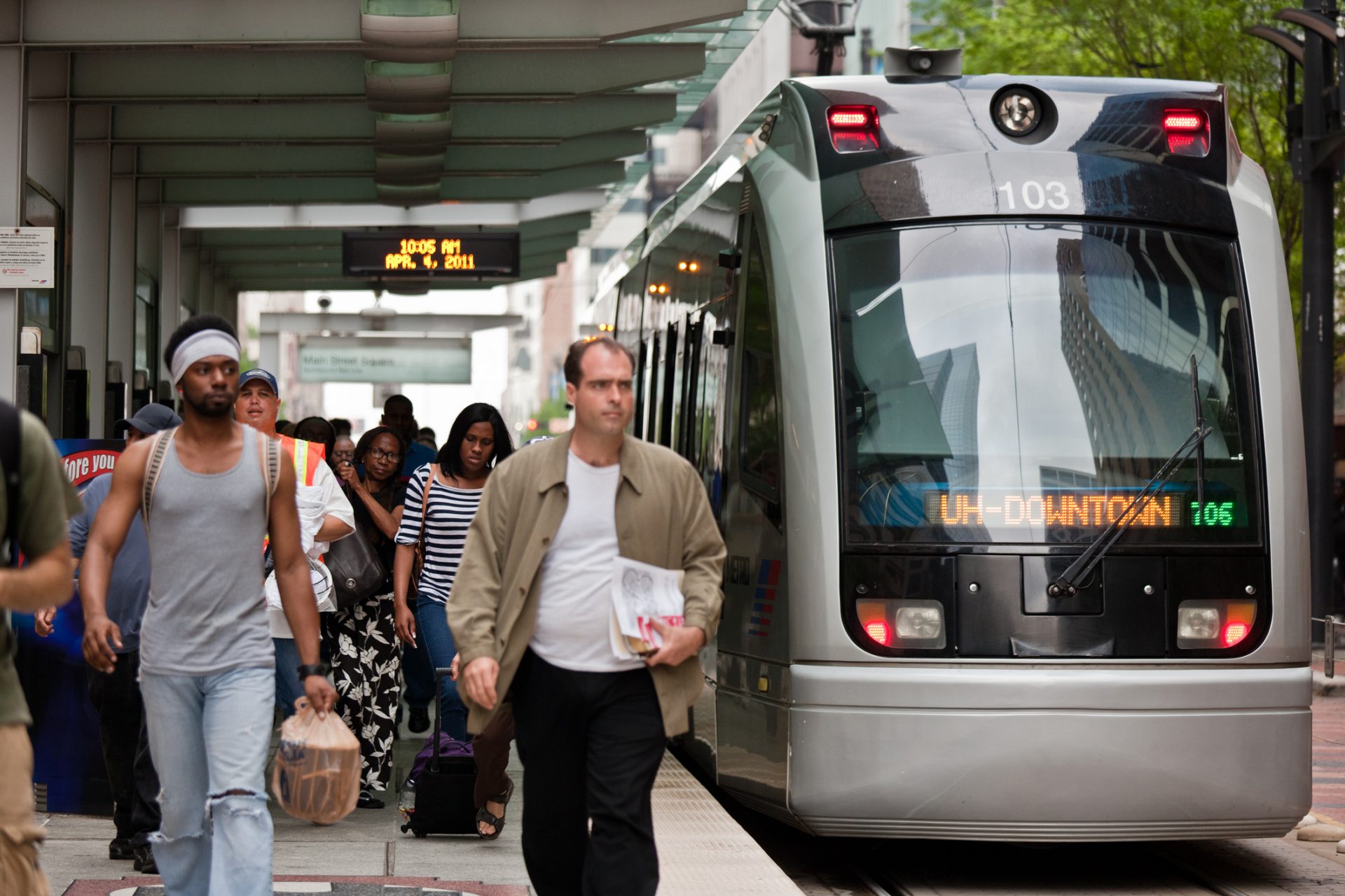 People in a Tram Station, Downtown Houston